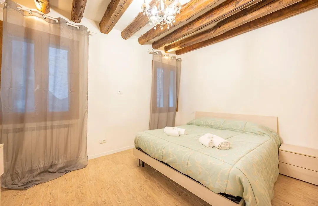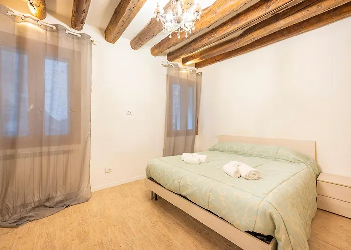 The apartment is nestled in the San Marco district, just a few steps from the ornate covered 16th-century stone footbridge "Rialto Bridge". This apartment is also in the centre of Venice, nearly 5 minutes on foot from the 16th - century Santa Maria Formosa Church. The museum gallery "Gallerie dell'Accademia" is within a few blocks of the accommodation.